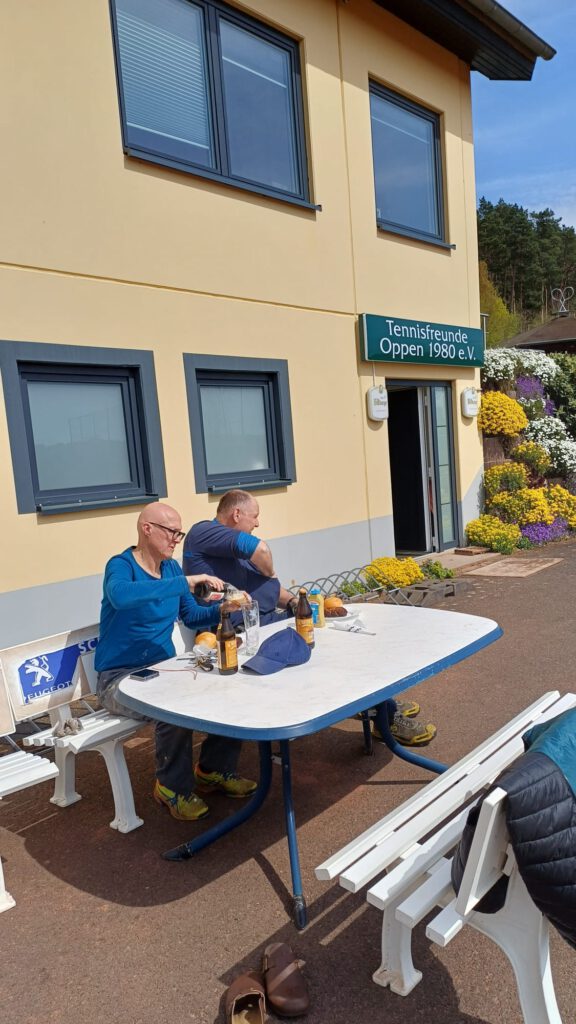 Vor dem Hintergrund des Saison-Startes der Oberliga-Mannschaft des Oppener Herren-55-Teams im ersten Heimspiel am 02.05.26, 13.30 Uhr gegen den Traditions-Club des TC Weiss-Rot 1897 Speyer, mobilisierte unser 1. Vorsitzender Matthias Klauck neben seinem Zwillings-Bruder Nico Klauck auch zwei Top-Stars des Herren-55-Teams (Stephan Schuh / Jens Weyand), um insbesondere für die zukünftigen Oberliga-Gäste eine „Wohlfühl-Atmosphäre“ auf der Oppener Tennis-Anlage zu gewährleisten.